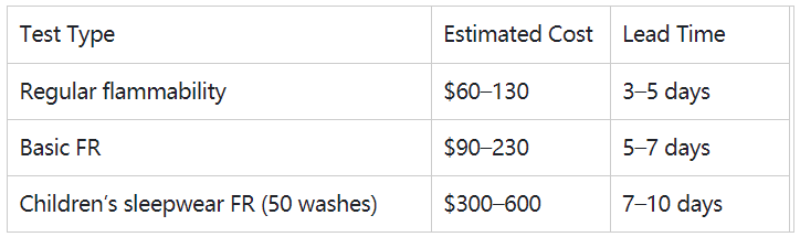 - Children’s sleepwear: mandatory dedicated FR standard (16 CFR 1615/1616)— CANNOT use regular flammability test.