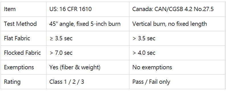 Q5: What is the difference between US and Canadian flammability standards?