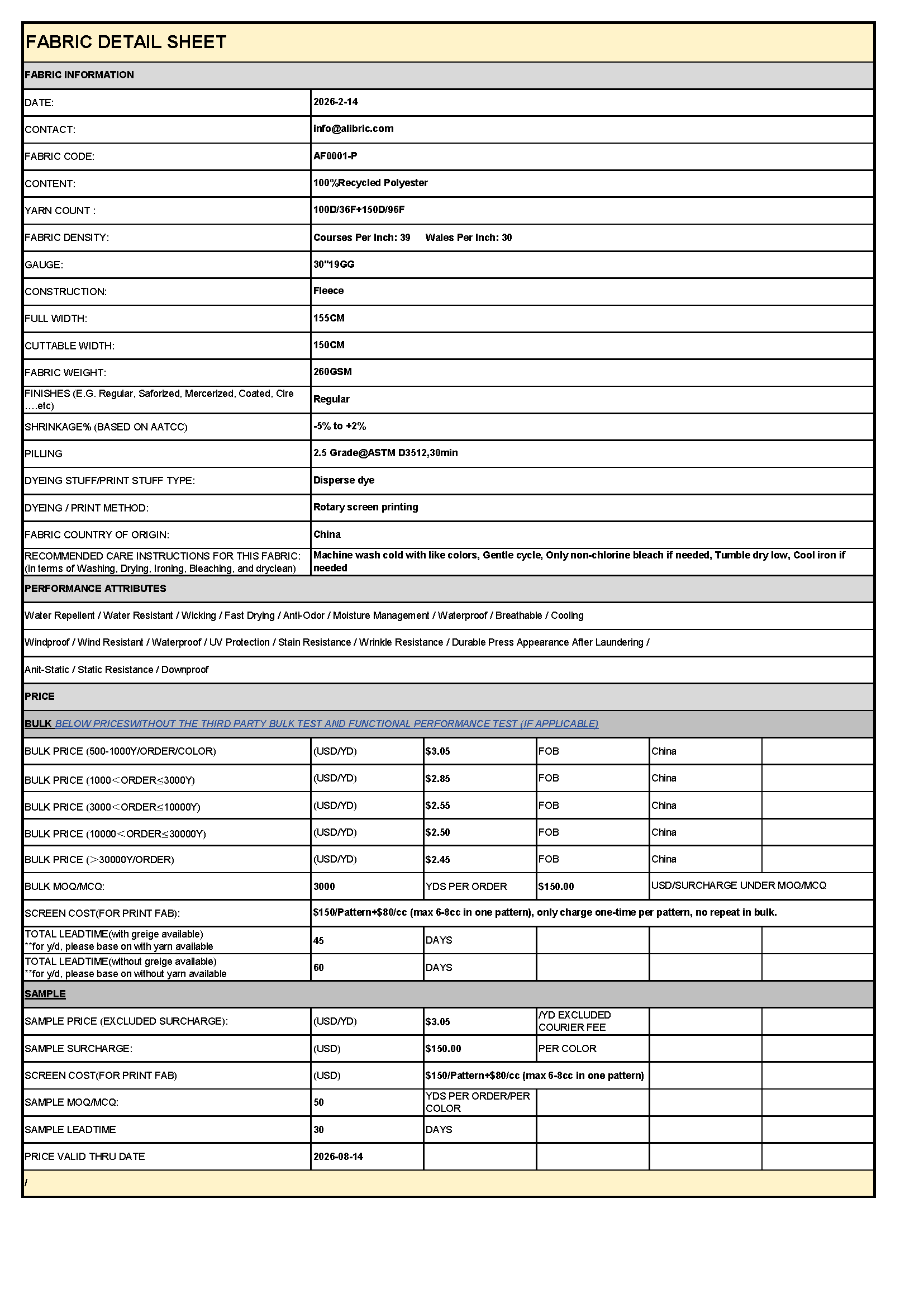 A printed version of our signature recycled sherpa fleece. Features the same distinctive pebbled pile face and soft brushed back, now available with custom designs. Made from 100% recycled polyester, this 260gsm fabric combines sustainable warmth with unlimited pattern possibilities—ideal for brands looking to stand out.