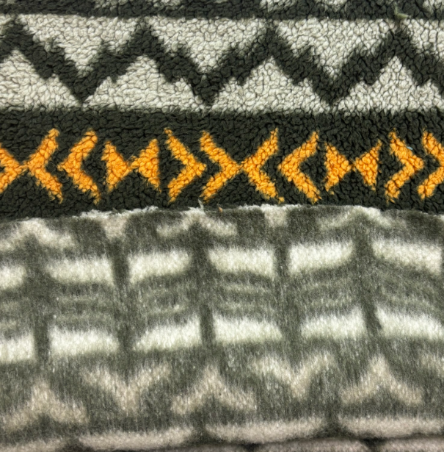 A 280gsm printed sherpa fleece featuring plush textured face and smooth back—engineered for cozy warmth, eye-catching style, and versatile comfort for cold-weather adventures.