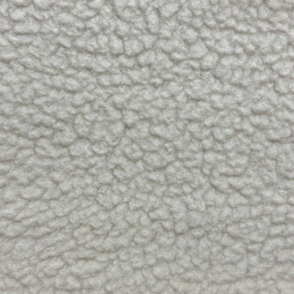 This lightweight sherpa fleece combines the classic textured look of a pebbled pile face with the practicality of a smooth plain back, making it ideal for next-to-skin comfort . At just 205gsm, this 100% recycled polyester fabric delivers subtle warmth without bulk—perfect for transitional seasons, indoor layering, or brands seeking a more breathable sherpa option .