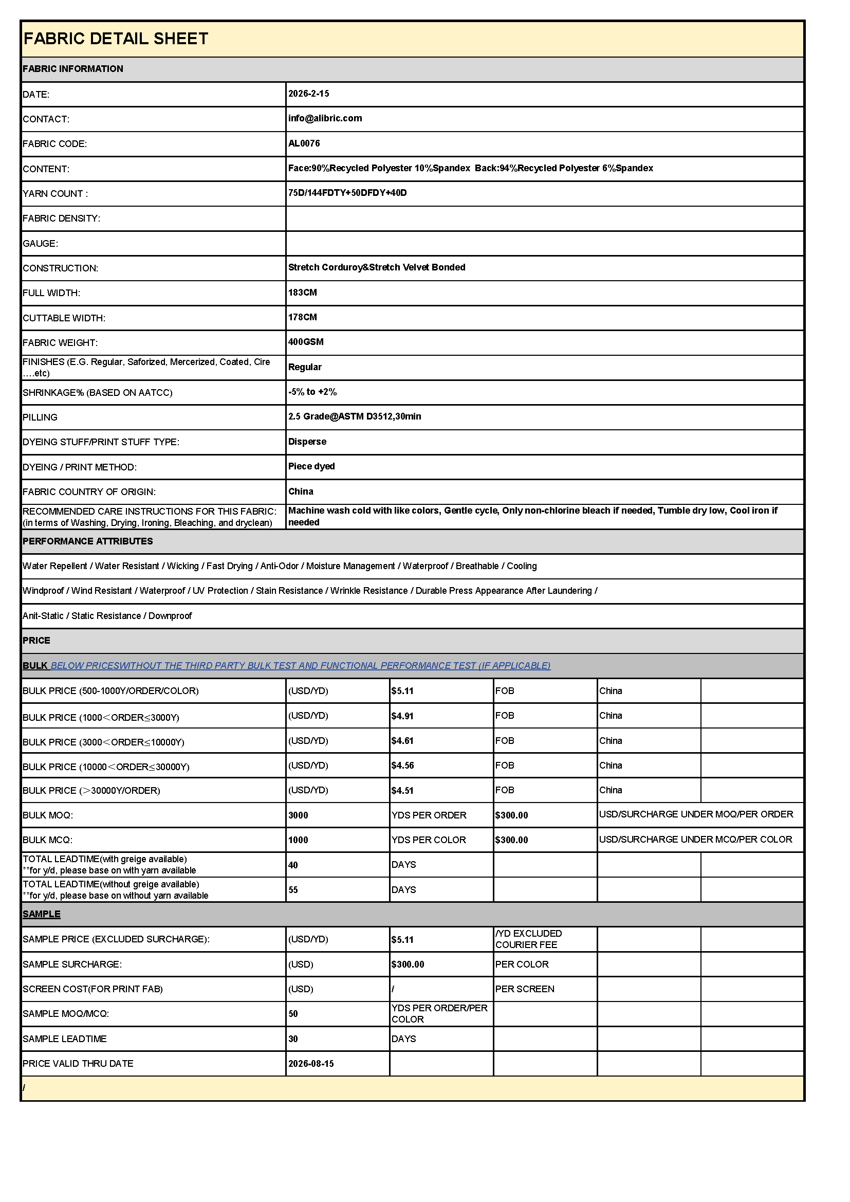 Finished with anti-pilling and anti-static treatments , this bonded stretch velvet maintains its luxurious appearance and comfort even after repeated wear and washing. Whether for elevated loungewear, cozy cardigans, or relaxed outerwear, this 400gsm corduroy-style stretch velvet delivers the perfect combination of vintage aesthetics, modern softness, and sophisticated texture.
