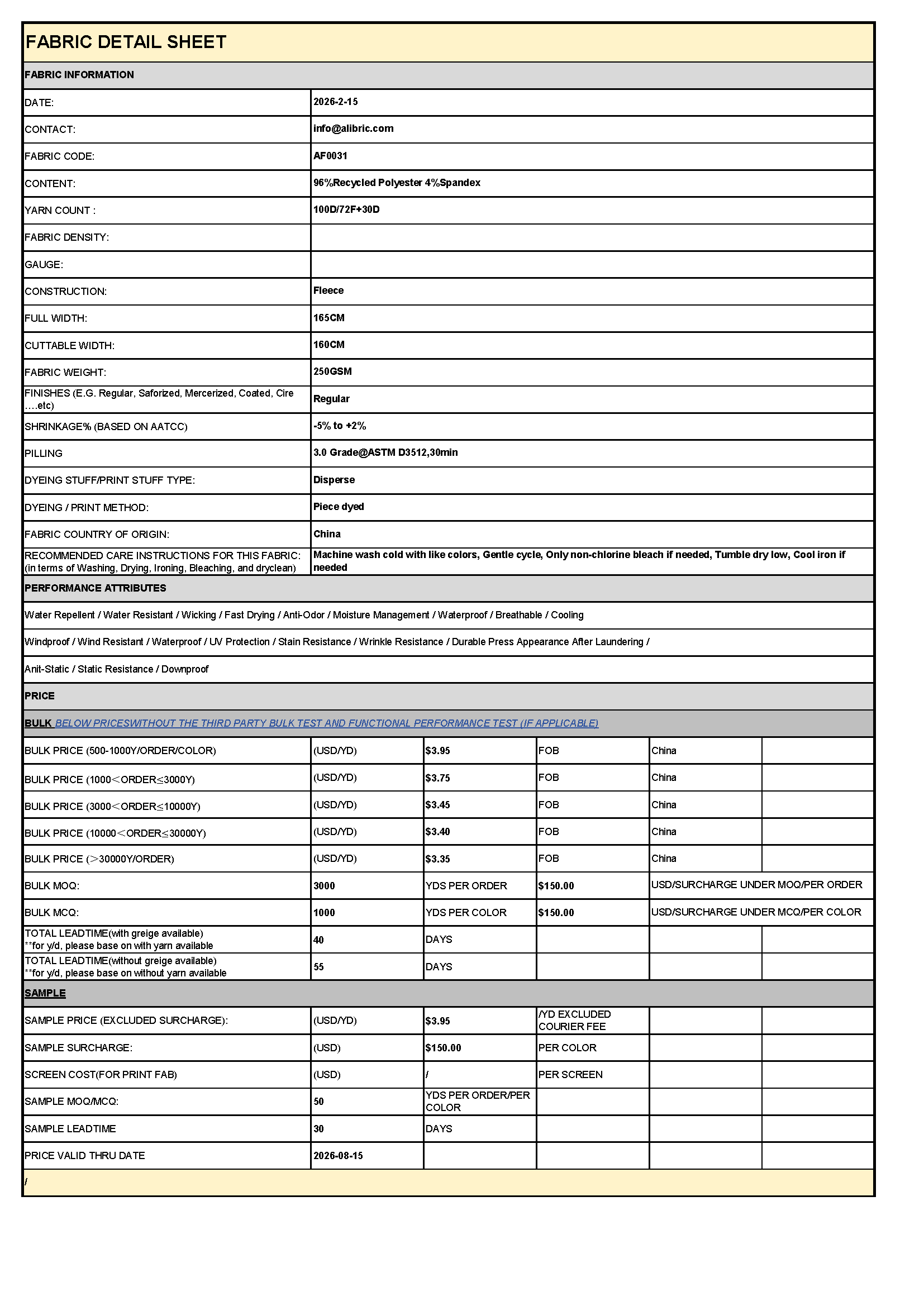Made from 96% recycled polyester and 4% spandex, this sustainable stretch grid fleece is ideal for brands seeking to combine performance, comfort, and distinctive visual identity in their cold-weather collections.