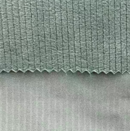This distinctive stripe fleece features a textured vertical stripe pattern on the face, created through specialized knitting construction that adds visual depth and tactile interest without compromising performance. The smooth, unbrushed back provides a clean surface that layers effortlessly and ensures stable fabric performance .