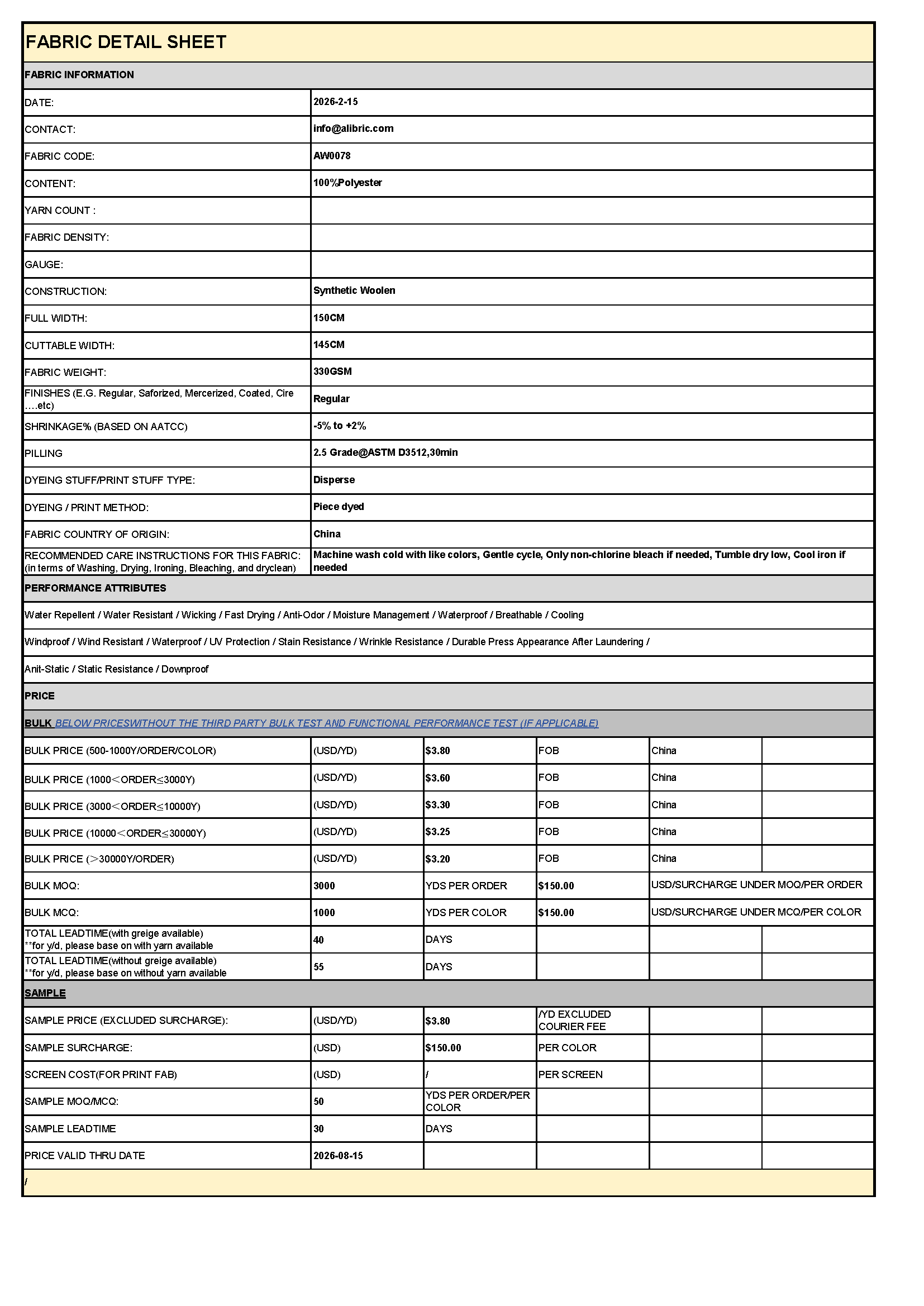 This innovative synthetic wool melton is crafted through a specialized needle-punching process that creates a dense, felt-like structure—mimicking the luxurious hand-feel of traditional wool melton while offering the easy-care benefits of polyester. The result is a fabric with a firm, stable handle that boasts excellent durability and minimal fraying at cut edges .