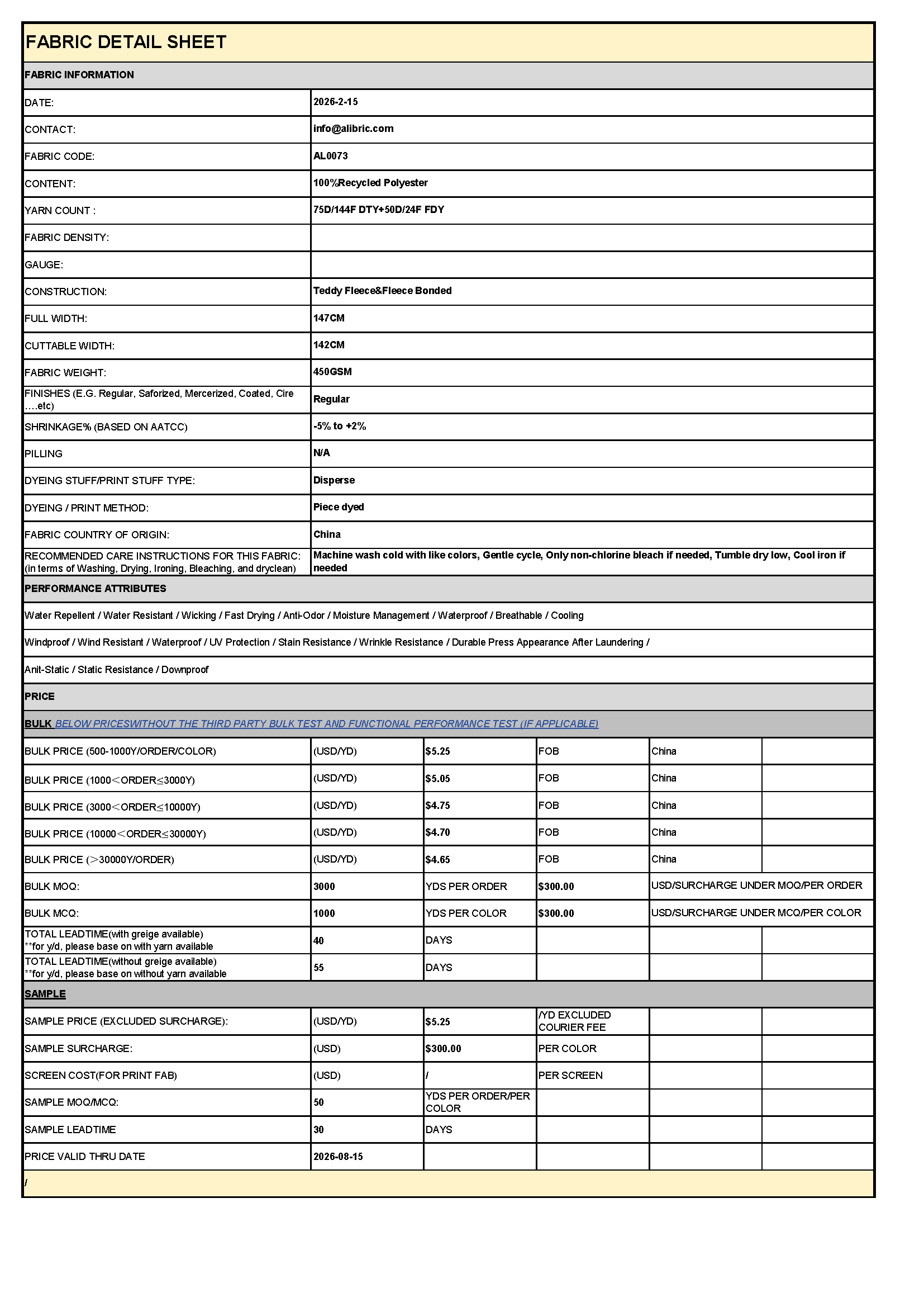 Whether for extreme cold-weather expeditions, winter outdoor activities, or simply the coziest layer for the coldest days, this 450gsm bonded teddy fleece delivers the ultimate combination of warmth, comfort, and sustainable performance.